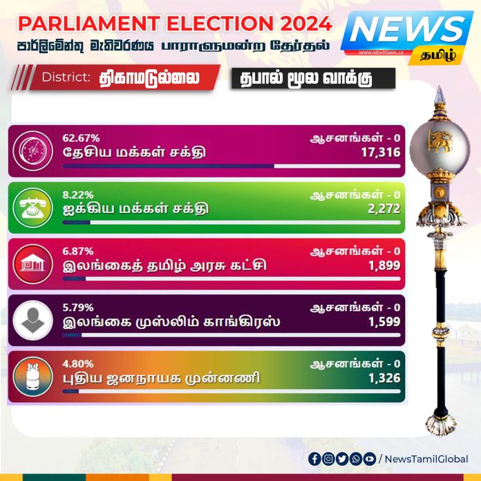 திகாமடுல்லை மாவட்ட தபால் மூல தேர்தல் முடிவுகள்