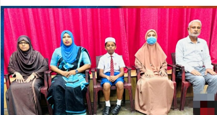 புலமைப்பரிசில் பரீட்சையில் கொழும்பு மாவட்டத்தில் முதலிடம் பெற்ற ஹமீத் அல் ஹூசைனி மாணவனுக்கு பாராட்டு
