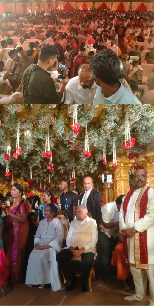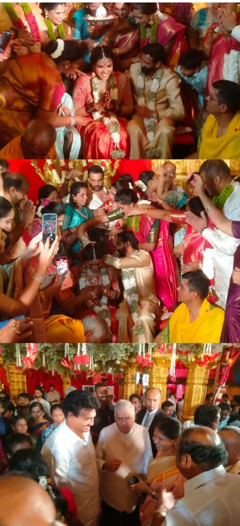 திருப்பத்தூர் ஆறுமுகம்பிள்ளை சீதை அம்மாள் கல்லூரி வளாகத்தில் நடைபெற்ற இன்றைய திருமண நிகழ்வில் இலங்கையின் முன்னாள் ஜனாதிபதி ரணில் விக்கிரமசிங்ஹ உட்பட பல இலங்கை பாராளுமன்ற உறுப்பினர்கள், இந்தியாவின் அரசியல், சினிமா மற்றும் வர்த்தகத் துறையைச் சேர்ந்த பிரமுகர்கள் ஆகியோர்களுடன் இ.தொ.கா பிரதிநிதிகளும் கலந்துக்கொண்டு சிறப்பித்தனர்.