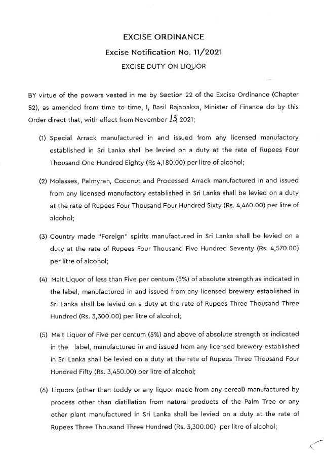 மேலும், வைன் 750 மில்லிலீற்றர் 14 ரூபாவினாலும், பியர் 350 மில்லிலீற்றர் 3 ரூபாவினாலும், 750 மில்லிலீற்றர்  14 ரூபாவினால் அதிகரிக்கப்பட்டு புதிய வர்த்தமானி அறிவிக்கப்பட்டுள்ளது.