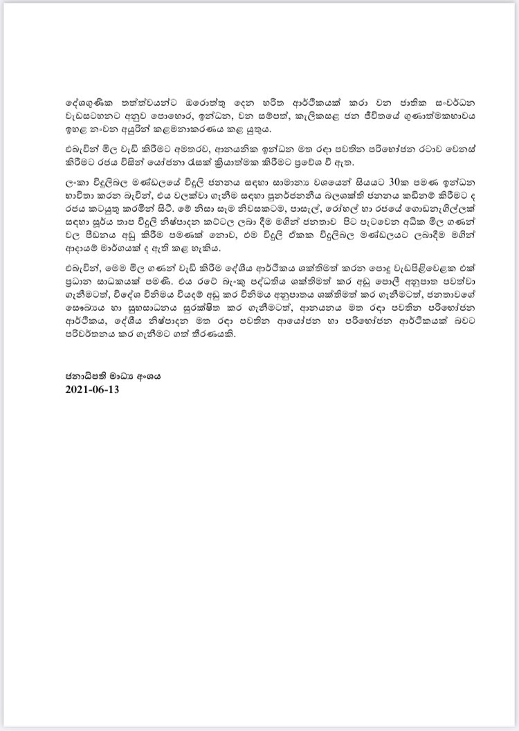 By: News Desk Date: June 13, 2021 எரிபொருள் விலையேற்றம்: ஜனாதிபதி வெளியிட்டுள்ள அறிவிப்பு தேசிய பொருளாதாரத்தை வலுப்படுத்தும் வேலைத்திட்டத்தின் ஒரு அங்கமே எரிபொருள் விலை அதிகரிப்புக்கான காரணம் என ஜனாதிபதி ஊடகப்பிரிவு தெரிவித்துள்ளது. Previous article“உலக மகா நடிப்புடா” – கம்மன்பில இராஜினாமா கோரிக்கை பற்றி மனோNext articleஅரசாங்க, தனியார் நிறுவனங்களுக்கு இராணுவத் தளபதி வேண்டுகோள் LEAVE A REPLY Cancel reply Comment: Please enter your comment! Name:* Please enter your name here Email:* You have entered an incorrect email address! Please enter your email address here Website: Save my name, email, and website in this browser for the next time I comment. இலங்கை தேசிய கீதத்தை பாடி அசத்தும் இரண்டு வெளிநாட்டு ரோஜா மொட்டுகள்! | வைரலாகும் வீடியோ!01:32 பாகிஸ்தான் தாக்குதல்| ஆப்கானிஸ்தான் கிரிக்கெட் வீரர்கள் பலி! இலங்கை கிரிக்கெட் தொடரிலிருந்து விலகல்!01:45 தெற்கு கடலில் மிதந்து வந்த ஐஸ் போதை உட்கொண்ட நாய்களுக்கு..நடந்த கேதி!01:53 பற்றி எரியும் ஆப்கானிஸ்தான்..! குண்டு மழை பொழியும் பாகிஸ்தான்! | நடப்பது என்ன?02:48 முதலைகளின் உதவியால் சிறுத்தையிடமிருந்து உயிர் தப்பிய மான்! | யால தேசிய வனத்தில் ஓர் அரிய காட்சி..!02:25 பிணைக்கைதிகளின் விடுவிப்பு..! பாலஸ்தீன் இஸ்ரேல் மக்களின் மகிழ்ச்சி கொண்டாட்டம்..!01:59 Share post: FacebookTwitterPinterestWhatsApp Popular ’போர் நிறுத்தத்தை இஸ்ரேல் மீறியுள்ளது’ ஜனாதிபதியின் தீபாவளி வாழ்த்துச் செய்தி அதிக விலைக்கு போத்தல் குடிநீரை விற்றதற்காக ரூ.25 மில்லியனுக்கும் அதிகமான அபராதம் சபாநாயகருக்கு எதிரான நம்பிக்கையில்லாப் பிரேரணை தயார்! அஜித் பெரேரா அறிவிப்பு முன்னாள் ஜனாதிபதி சந்திரிகா காலமானார் என்ற செய்தி தொடர்பான விளக்கம் More like thisRelated ’போர் நிறுத்தத்தை இஸ்ரேல் மீறியுள்ளது’ News Desk - October 20, 2025 போர் நிறுத்தத்தை இஸ்ரேல் அப்பட்டமாக மீறியுள்ளதாக ஹமாஸின் மூத்த உறுப்பினர் இஸ்ஸாத்... ஜனாதிபதியின் தீபாவளி வாழ்த்துச் செய்தி News Desk - October 20, 2025 உலகெங்கிலும் வாழும் இந்து பக்தர்களால் மிகுந்த பக்தியுடன் கொண்டாடப்படும் தீபாவளி பண்டிகை... அதிக விலைக்கு போத்தல் குடிநீரை விற்றதற்காக ரூ.25 மில்லியனுக்கும் அதிகமான அபராதம் News Desk - October 19, 2025 அதிகபட்ச சில்லறை விலையை விட கூடுதல் விலைக்கு போத்தலில் அடைக்கப்பட்ட குடிநீரை... சபாநாயகருக்கு எதிரான நம்பிக்கையில்லாப் பிரேரணை தயார்! அஜித் பெரேரா அறிவிப்பு News Desk - October 19, 2025 சபாநாயகர் ஜகத் விக்ரமரத்னவுக்கு எதிரான நம்பிக்கையில்லாப் பிரேரணை வரைபு மசோதா தயார்...